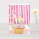 Pink decorations with frosted cupcake and lit candles of the number 16, celebrating a sweet sixteen birthday