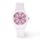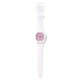 The design on this watch is reminiscent of cotton candy. It has a delicate scrollwork pattern with leafy swirly designs in pink and white.