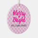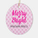Pink tartan Christmas Merry Bright Family name Ceramic Ornament