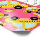 Modern and trendy cute cartoon pink taxi car pattern with yellow cars and black and white checkers stripe background for a unique gift. The best taxi gift ideas for men and boys and girls.