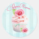 Tea Rose Cupcakes on Robins Egg Blue Stripes with a gorgeous vintage designed gossamer frame, to seal your envelopes perfectly for invitations to tea, a soiree or any party you can think of.