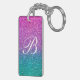 Pink Teal Aqua Blue & Purple Sparkly Glitter Name Key Ring