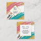 Pink Teal Gold Glitter Paint Makeup Square Business Card