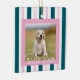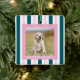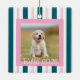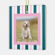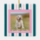 A charming pink and Teal striped dog photo keepsake, perfect for pet lovers. This striped design highlights your favorite dog photo while adding festive charm. A sweet personalized keepsake for holiday gifting.