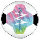 Colourful pastel rainbow tie dye fabric texture design on a custom-printed soccer ball with your name and monogram initial will stand out at practice and will definitely not get confused with any one else's! In pink, turquoise, aqua blue, and green, custom soccer balls make a great gift for girly sports lovers, and are a fun pick me up for summers at home, both on and off the soccer field.