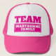 Typographical graphic team event hat in bright pink. Reads: Team and then personalize with your team name. Perfect to for team events, family gathering, sporting events, team building events and more. Design by www.mylittleeden.com