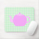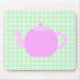 Pink Teapot Design on Green Check. Mouse Pad