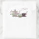 Pink Teapot, Teacup and Cupcake Art Oval Sticker