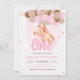 Pink Teddy Bear 1st Birthday Bear with Balloons Invitation