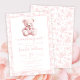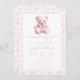 Pink chick floral seamless pattern elegant baby girl shower invitation with cute pink teddy bear. We can bearly wait baby shower.