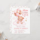 Pink teddy bear with balloons on clouds with stars birthday party invitation.