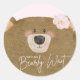 Pink Teddy We Can Bearly Wait Girl Baby Shower Classic Round Sticker