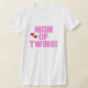 Mum of Twins T-shirts, mugs, buttons, cards, mousepads, and other Mum of Twins items with pink text and two red hearts, perfect for the mum of twin girls!