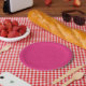 Pink textured surface with subtle swirling pattern paper plate