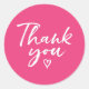 Thank you brush script hand lettered stickers in hot pink for your party favours, perfect for any occasion including weddings and just because.