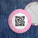Promotional small business QR code button with a pink border and your own QR code and custom text in a curve around your QR code. Thank you for shopping promo button personalized with your QR code and custom text.
