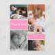 Personalised this vertical format, collage baby thank you card with your favourite photos. The postcard is perfect for expressing your excitement in announcing the birth of your second child and send your family's gratitude at the same time. The words, photos, greeting and sign-off can be easily customised as needed. The pink blocks can be changed using the customisation tool.
