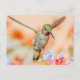 Pink-Throated Hummingbird Flying Over Flowers Postcard