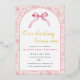 Pink Toile Coquette Bow 1st Birthday Girl