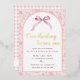 Romantic coquette birthday invite with ribbon, toile and photo back.