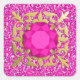 A faceted Pink Topaz in an ornate gold setting against a deep fuchsia / hot pink druzy quartz background