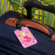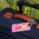 Cute pink luggage tag ideal for girls this named id tag will help you find your case. Personalise with your name and address on the reverse. Pretty design with a cuddly soft toy doll watercolor art painting. Original rag doll watercolor by Sarah Trett.