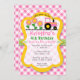 Gear up for a birthday party with this adorable invitation! Features cute pink tractor and sunflowers with a yellow frame on a pink gingham background.