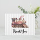 Thank you card with a cool illustration. A pink cute and whimsical train engine. Puffs of pink smoke coming out of its smokestack.