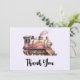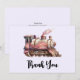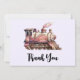 Thank you card with a cool illustration. A pink cute and whimsical train engine. Puffs of pink smoke coming out of its smokestack.
