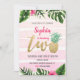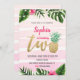 Tropical 2nd Birthday Invitation Card String Lights, Tropical Leaves & Gold Pineapple