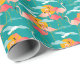 Pink Tropical Flamingos on Teal Wrapping Paper