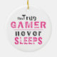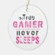 Pink True Gamer Never Sleeps Quote Girl Gamer Ceramic Ornament