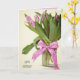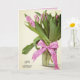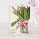 Retro color effect pink tulip bouquet on white with polka dot bow for birthday