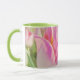 This pretty, floral mug features my original photograph of pretty pink tulips in a garden, processed with a watercolor technique for an illustrated, painterly style with a touch of whimsy. It has a green colour inside it and on the handle, which may be changed if desired. These are 11-ounce mugs, just the perfect size for your home brewed coffee or tea - or even hot chocolate! It would make a great gift and you can put packets of coffee, tea bags or hot chocolate inside. One other gift idea is putting a little plant in it to make it extra special for your loved one.