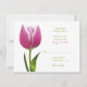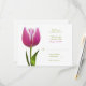 The text and background colour on this magenta pink tulip wedding reply or RSVP card is fully customisable. You can change the text using the personalise option. For more extensive changes to the card, including changing the background colour, font, font colour, or text layout, choose the customise option. This is a great reply card for a spring, summer, or fall wedding with a tulip theme. Simple, pretty, and cheerful. This invitation is currently customised as a wedding reply card, but would also work great as an invitation for a bridal shower, special birthday, anniversary, or garden party. All you need to do is change the wording. Also, with changes to the text, you can make this a reception, direction, and/or accommodation card. Check out the matching wedding invitation shown below.
