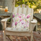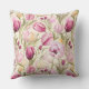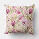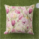 This outdoor accent throw pillow is shown with a lovely pink tulip print.