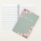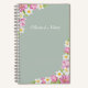A classic garden-inspired notebook adorned with pink tulips and white daffodils on a soft sage background. Personalize the cover with your name or other text for a timeless and elegant stationery piece perfect for journaling or everyday notes.