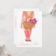 Easter greeting card with soft pink fashion girl illustration with basket filled with pink tulips and bunny ears. At the bottom the words "Happy Easter" Add your own message to the back.