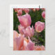 Pink tulips in a flower bed with the sunlight making patterns in the petals.