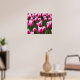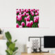 Poster shown with a photo print of a field of pretty pink tulips. Customise this item or buy as is. Stock Image