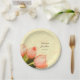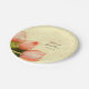 Pretty pink tulips wedding paper plates feature a digitally enhanced tulips image on coordinating pale yellow background with customisable newlyweds' names and wedding date - by katz_d_zynes | Part of katzdzynes' Pink Tulips Spring Wedding collection >> https://www.zazzle.com/collections/119722397006258604