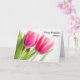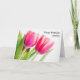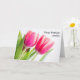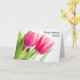 Birthday card with a beautiful spring photograph featuring 2 pink tulips and bright green leaves.