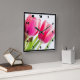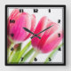 Pink Tulips with Green Leaves Photo Square Wall Clock