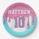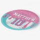 Pink & Turquoise Baseball Drip Birthday Party Paper Plate