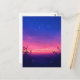 This ethereal postcard captures a breathtaking twilight transition over a wild meadow. The scene features a brilliant gradient sky moving from a warm, glowing orange at the horizon to a vivid magenta and finally a deep, star-studded indigo. Delicate silhouettes of wildflowers and tall grasses frame the bottom of the piece, set against a shimmering, luminous field that mirrors the starry sky above. With its high-contrast palette of hot pink, purple, and navy blue, this artwork evokes a sense of magical evening serenity. This postcard is a perfect choice for sending a heartfelt message, a dreamlike greeting, or as a beautiful keepsake for those who love celestial landscapes and botanical beauty.
