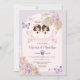 Pink TWIN Girl First Holy Communion Purple Floral Invitation