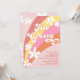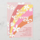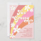 Pink Two Groovy Retro Daisies Rainbow Birthday Invitation