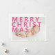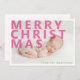 Celebrate your first Christmas with a stylish and modern touch. This minimalist holiday photo card features a bold Merry Christmas in transparent pink sans-serif letters placed over your favourite newborn or family photo. A custom family greeting in elegant transparent green text anchors the bottom, making this card both unique and heartfelt. Designed for light-toned images, the transparent overlay lets your loved ones' faces shine through while maintaining a clean, contemporary aesthetic. Perfect for new parents or families wanting to share holiday joy with a modern twist.