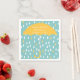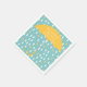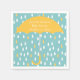 Neutral aqua coloured baby shower paper napkins, with cute graphics of big white and yellow raindrops falling around a yellow umbrella. Personalise the white text for your baby shower event. Coordinating baby shower products are available.