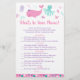 These elegant What's In Your Phone cards are a great way to kick off the fun at your Baby Shower & guaranteed to be a huge hit! Simply pass them around during the Baby Shower where guests will have fun going through their phones and checking off items that they have from the list. The person with the most points wins! The design features under the sea animals in pink, purple and teal.